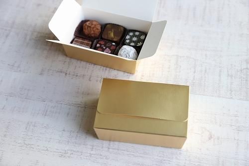 ツヤ消しゴールドのシンプルなショコラボックス。