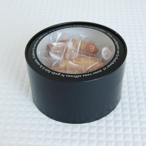 シックなブラックカラーの円筒型焼菓子用BOX。