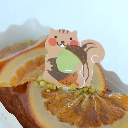 秋の味覚を両手いっぱいに抱えたリスのケーキ用ピック。